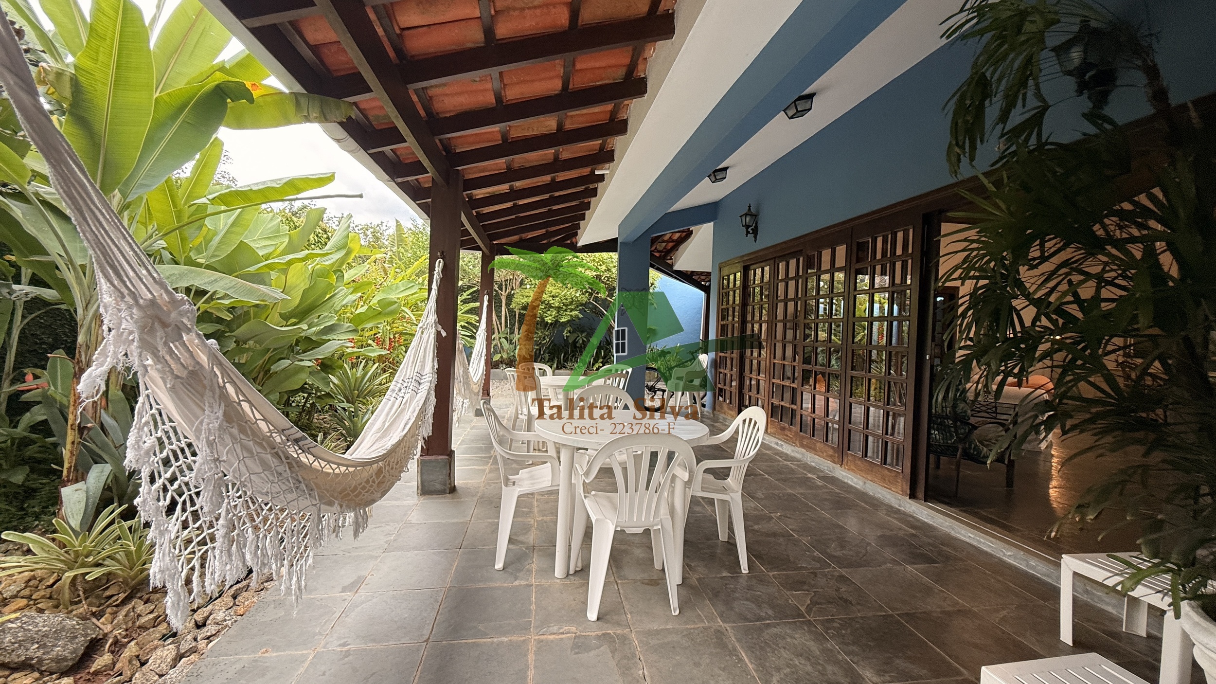 A casa conta com 5 suítes com armários, proporcionando conforto e privacidade para família e convidados.
