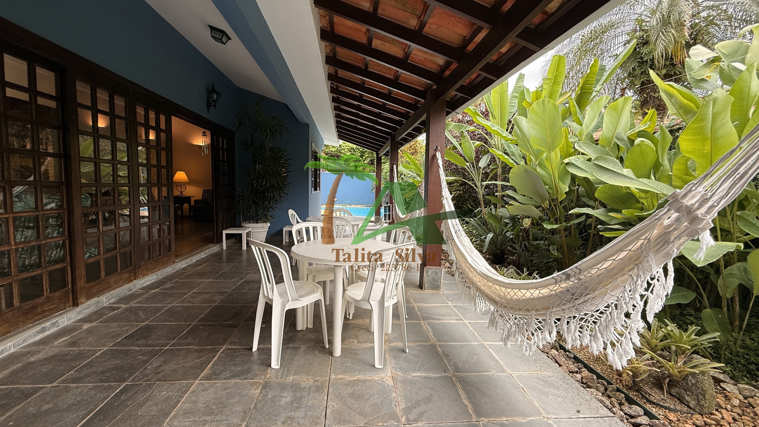 Na área externa, o imóvel possui varanda gourmet, ideal para momentos de lazer e confraternização, além de piscina com cascata.